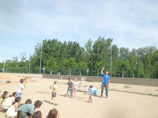 Com a premi del concurs d'experiments de La Noguera, els nens i nenes de P5B vam guanyar un taller de llançament de coets, a càrrec del Centre d'Observació de l'Univers. Avui han vingut a l'escola i ens ho hem passat d'allò més bé enlairant coets!